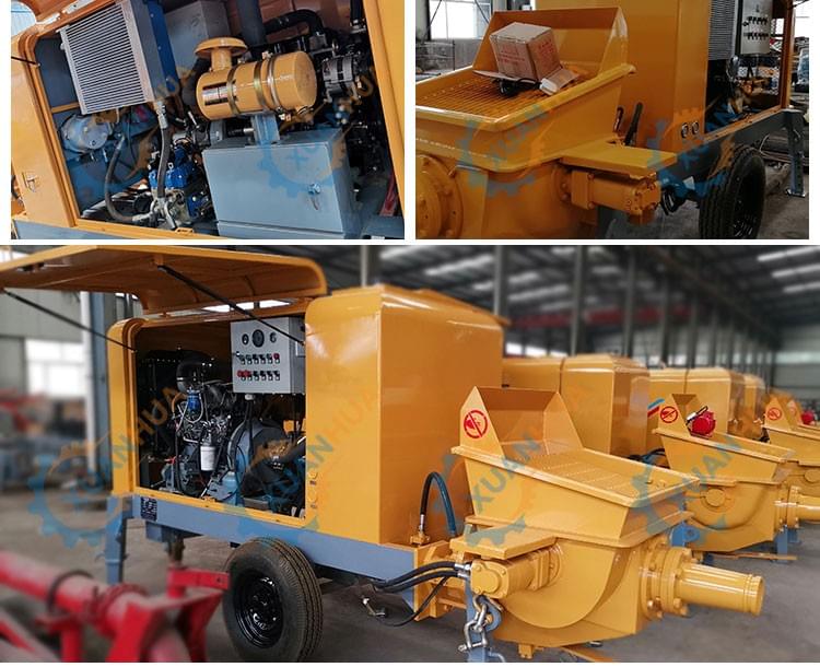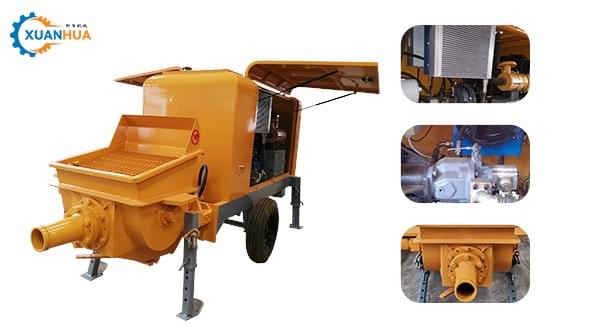 Concrete ground pump is a construction equipment that relies on pressure to transport concrete through pipelines. It is equipped with special pipelines, which can continuously complete horizontal and vertical transportation of concrete along the pipeline. It is an ideal one among existing concrete conveying equipment. Combining the production of ready-mixed concrete with pumping construction, the use of concrete mixer trucks for intermediate operation can realize continuous pumping and pouring of concrete. Concrete conveying work for large concrete projects.