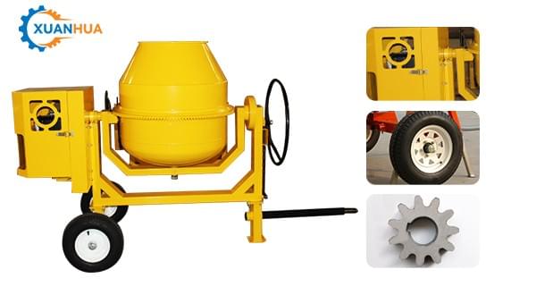 The mixer machine concrete is small and portable, and is widely used in the mixing of cement, mortar, concrete, stucco, seeds, feed and other materials. Wide range of applications.