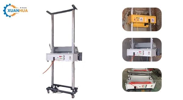 Wall plastering machine is also known as: plastering machine, powder wall machine. It is a hoist with a vertical gantry frame and a facing scraper frame installed on the top of the chassis. A hopper above the chassis and connected to the chassis is installed inside the two columns of the scraper frame. On the column, one side of the gantry frame is provided with a discharge port on the vertical surface of one end of the hopper, and a scraper is installed at the lower part of the discharge port; in the hopper, there is a driving roller supported along its width direction, and the motor passes through the reducer and the driving device. The rollers are connected, and the other end of the hopper is provided with a feeding port. The wall plastering machine belongs to the field of construction machinery. It has advantages and strong practicability. It saves the process of dotting and stripping in the plastering construction, saves labor and time, is convenient to carry, simple to operate, and has excellent engineering quality, especially for some without plastering. Wall experienced and skilled workers are available. This machine is a special equipment for plastering the vertical walls of residential buildings and office buildings.